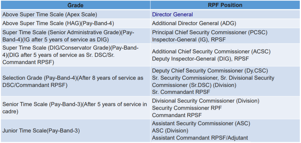 •The RPF Group A officers are also eligible for many deputation postings like other Group A officers of Central Government