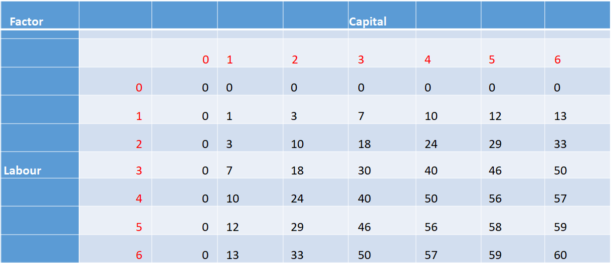 •The production function, therefore, tells us the maximum quantity of output (q) that can be produced by using different combinations of these two factors of productions- Labour (L) and Capital (K).