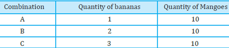 •Combinations A, B and C consist of same quantity of mangoes but different quantities of bananas.